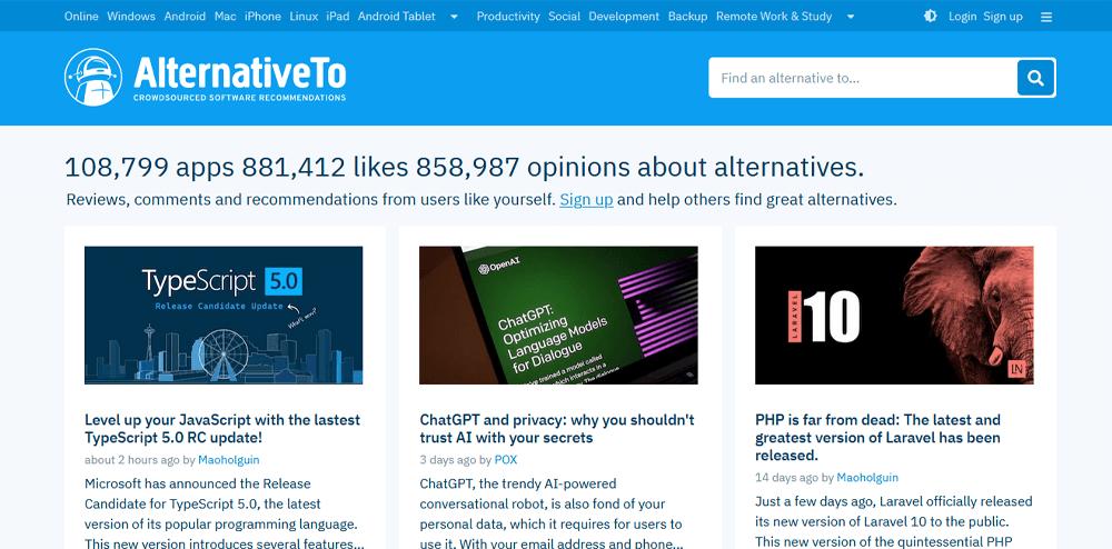 This next website is my favourite. When talking about TinyPNG we mentioned the rather costly Adobe Photoshop. We use this at the Quality Streamers studio pretty much on a daily basis along with After Effects, Premiere Pro, Illustrator etc. We’ve already given an alternative to Premiere Pro with Davinci Resolve, but, what about everything else? And by that, we don’t just mean Adobe products, we mean… EVERYTHING ELSE. That is where AlternativeTo comes in. AlternativeTo is an extremely useful website, especially in today’s current financial climate where some people struggle with daily bills, so expensive software, and even streaming services are a luxury that is out of reach for some of us. Now, we’re not saying that everything on this website is a free alternative, but generally, they are free or cheaper than whatever it is you’re searching for. And maybe the financial struggles are not the reason you are looking for an alternative. Maybe you’re looking for something easier to use, or different to check what else is out there. AlternativeTo has you covered. It boasts 108,799 apps in its database all with opinions from other users helping you decide if the alternative is worth taking a look at or not. Let us just give you a quick summary of what people are searching for alternatives to. The list includes Netflix, Adobe Photoshop, Spotify, ChatGPT, Microsoft Word, YouTube, Canva, Snap Camera to name just a few. To visit the website and check out some alternative software and services, click here.